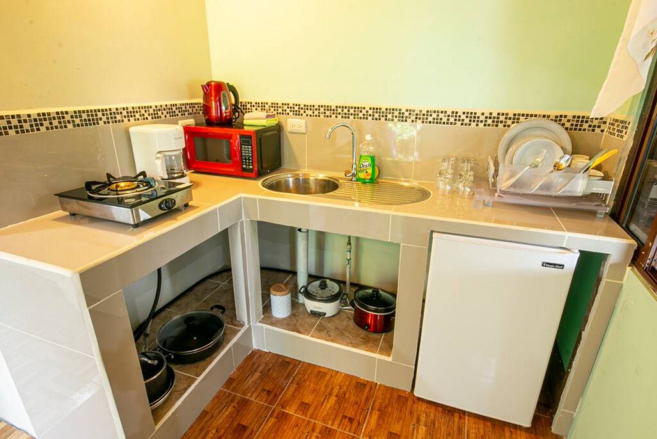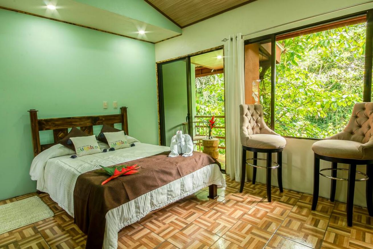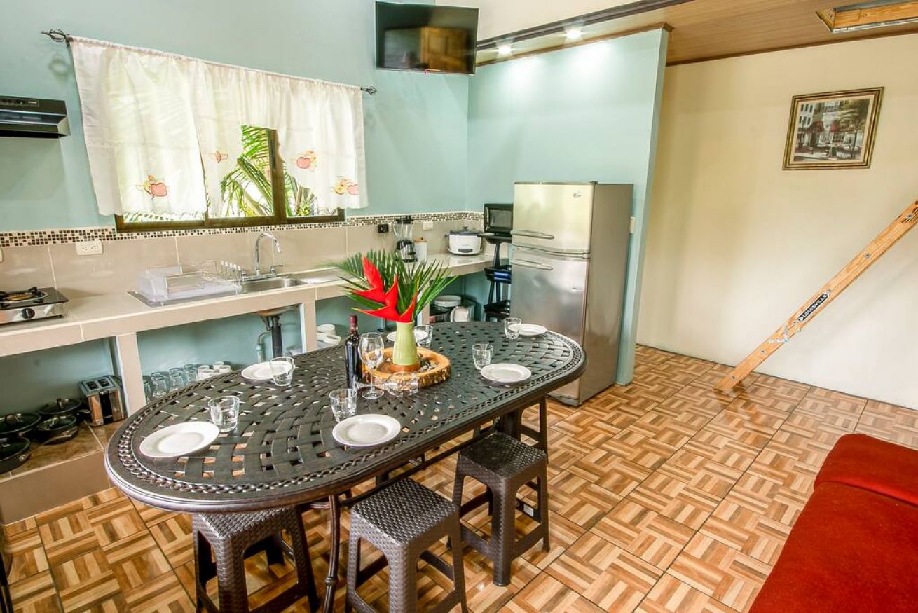 -Cabaña 1: Cuenta con 1 cama matrimonial, baño privado, A/C, TV, WI-FI y cocina pequeña.
