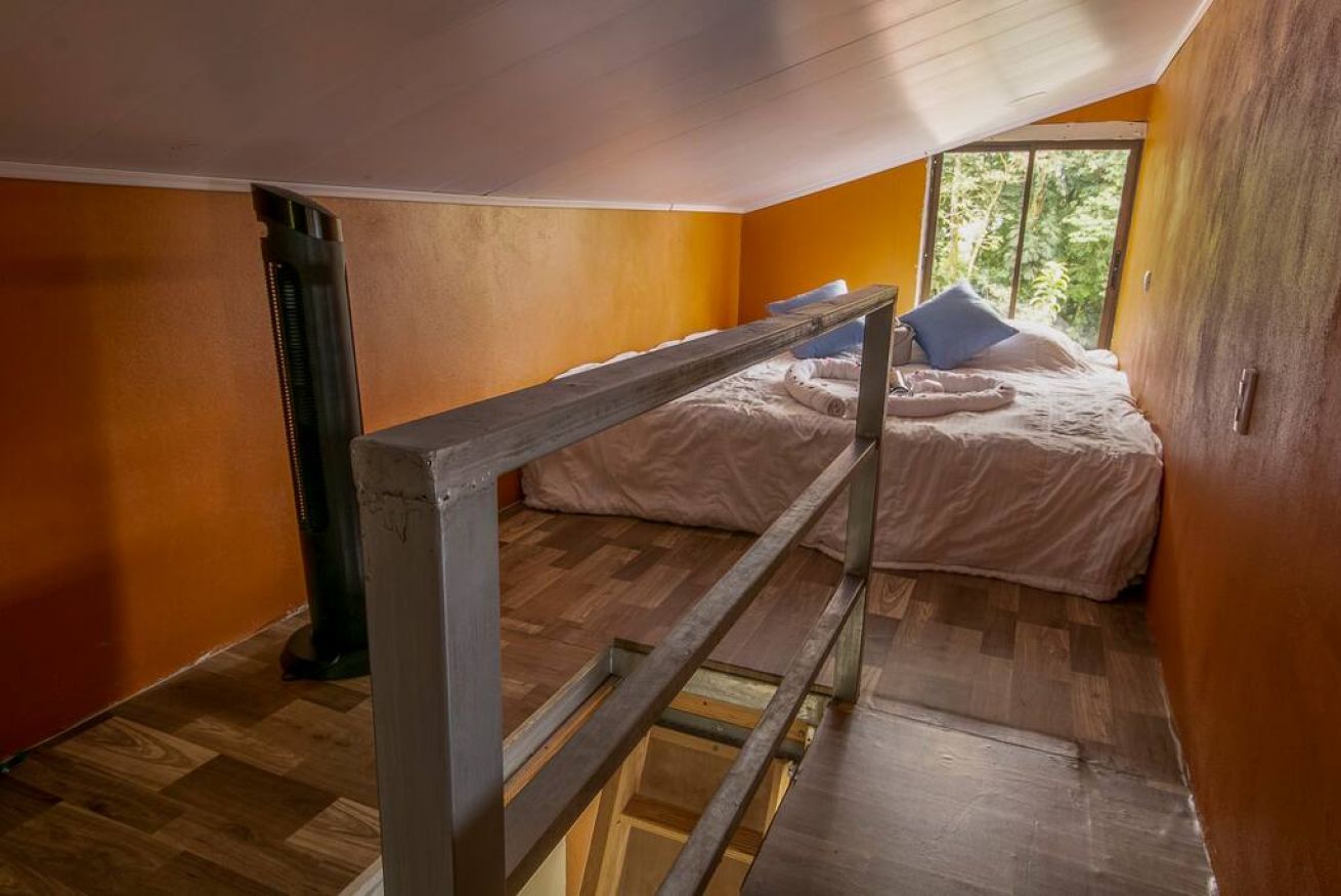 -Cabaña 2: Cuenta con 1 cama matrimonial y 1 camarote individual en las 2 plazas, baño privado, A/C, TV, WI-FI y terraza.